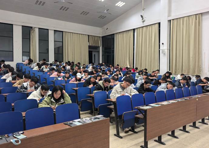 于10月28日晚上7:30在潇湘校区D座教学楼开展了校规校纪与安全知识考试,全体2025级本科新生参与了本次考试。