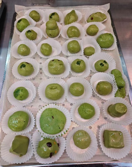 在动手制作环节,同学们分组协作、配合默契,纷纷化身“面点师”。称量食材、揉捻糯米团,再包裹上咸蛋黄、豆沙、奶黄等多样馅料,大家在工作人员的辅助下大胆尝试,发挥创意,将专业巧思融入传统美食的制作之中。指尖流转间,一个个圆润饱满、造型精巧的青团陆续成型,现场气氛轻松热烈,欢声笑语不断。制作完成的青团经统一蒸制后新鲜出炉,色泽翠绿,香气扑鼻。同学们围坐在一起,品尝亲手制作的美食,软糯香甜的口感满载春日气息。大家交流制作心得,畅谈对传统文化的感悟,在劳动成果中体会传承的意义,在互动交流中增进同窗情谊。